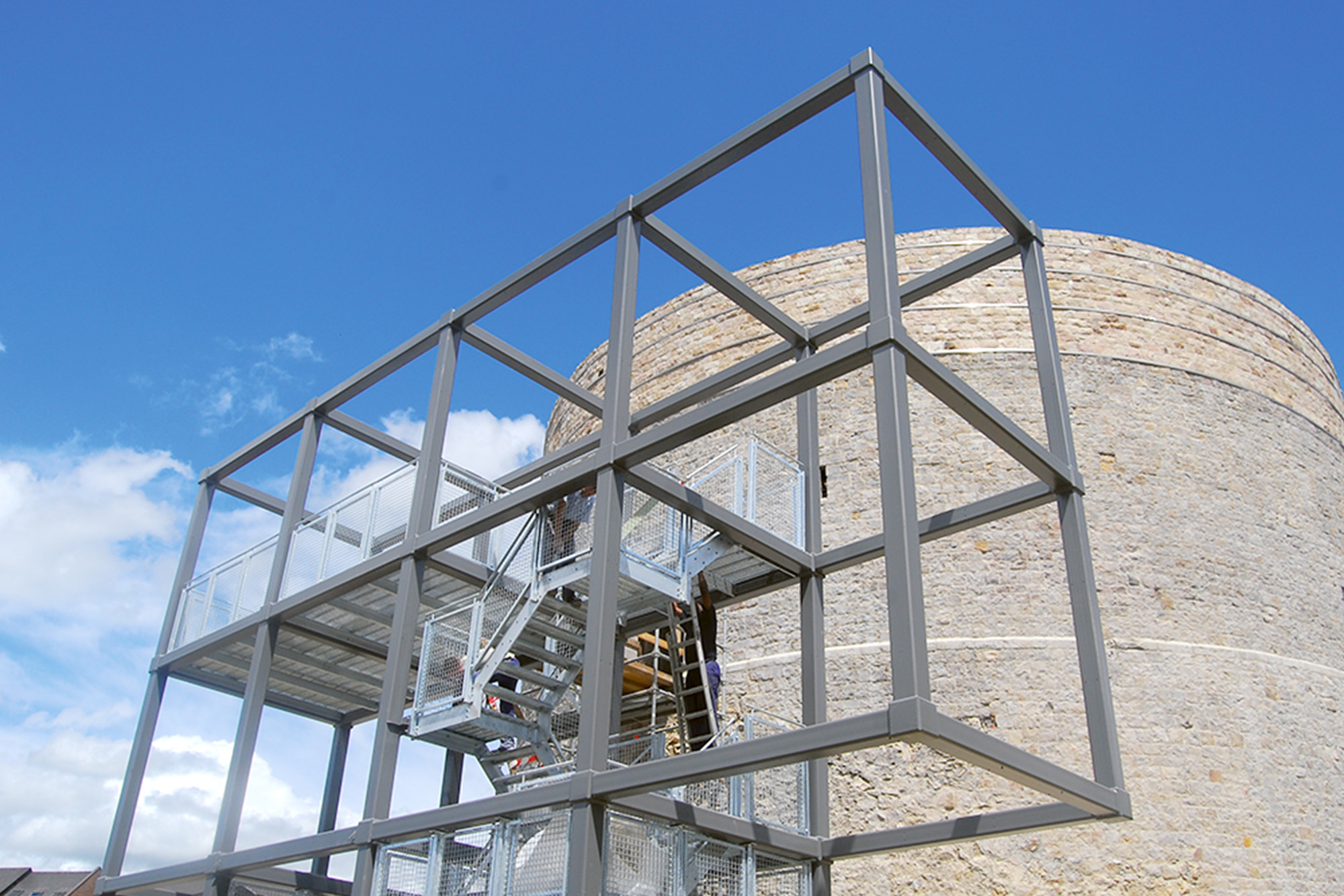 Blauwe stalen uitkijktorens