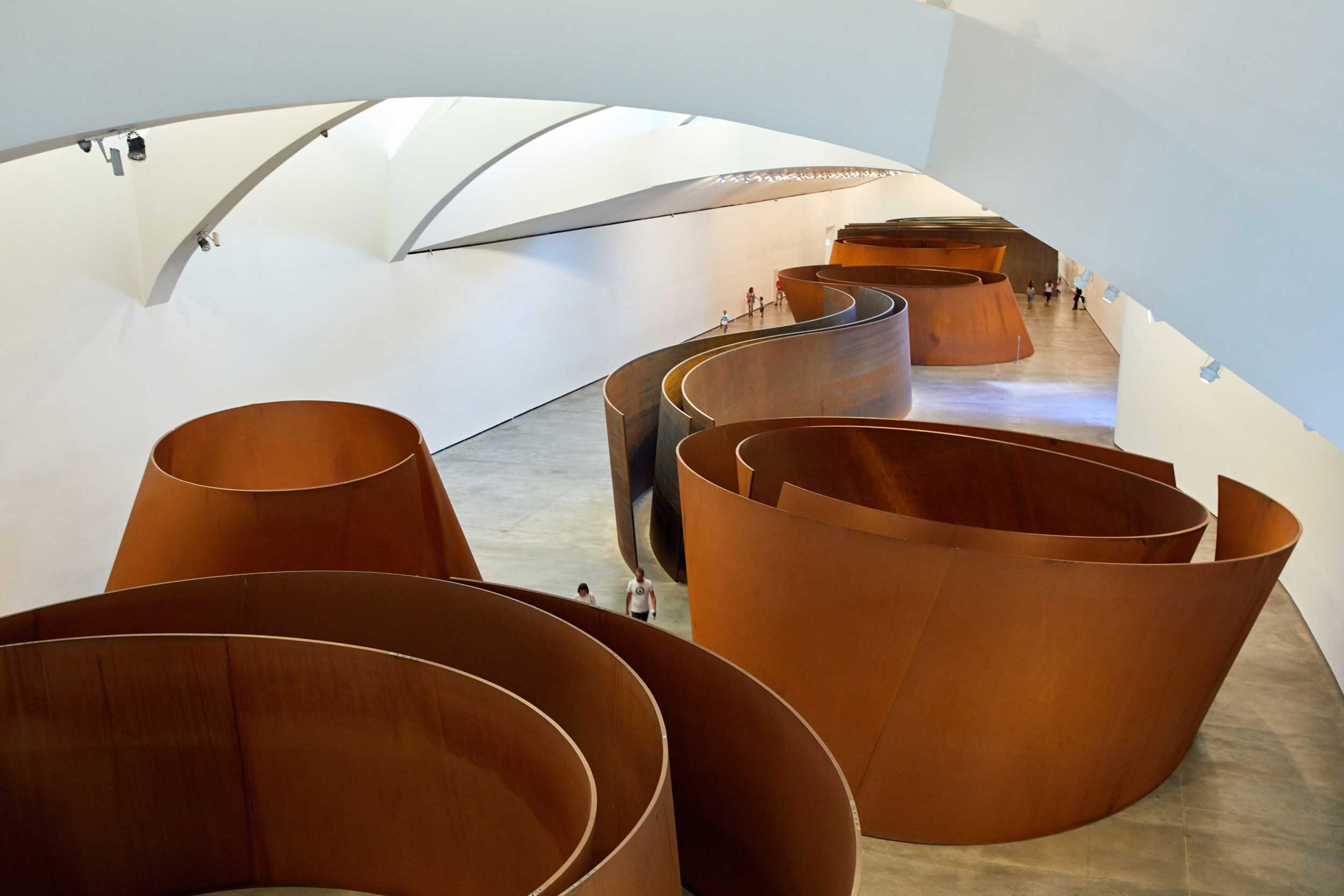 Het Guggenheim Museum is zonder twijfel de meest spectaculaire bezienswaardigheid van Bilbao en een must voor een rondleiding door dit meesterwerk van kunst en architectuur. Het Guggenheim Museum, ontworpen door de Canadees-Amerikaanse architect Frank Gehry, vertegenwoordigt een architectonisch monument met een gedurfde configuratie en een innovatief ontwerp, dat een verleidelijke setting vormt voor de kunstcollectie die er wordt tentoongesteld, zoals het gigantische werk van gebogen staalplaten 'The Matter of Time' van minimalistische kunstenaar Richard Serra.