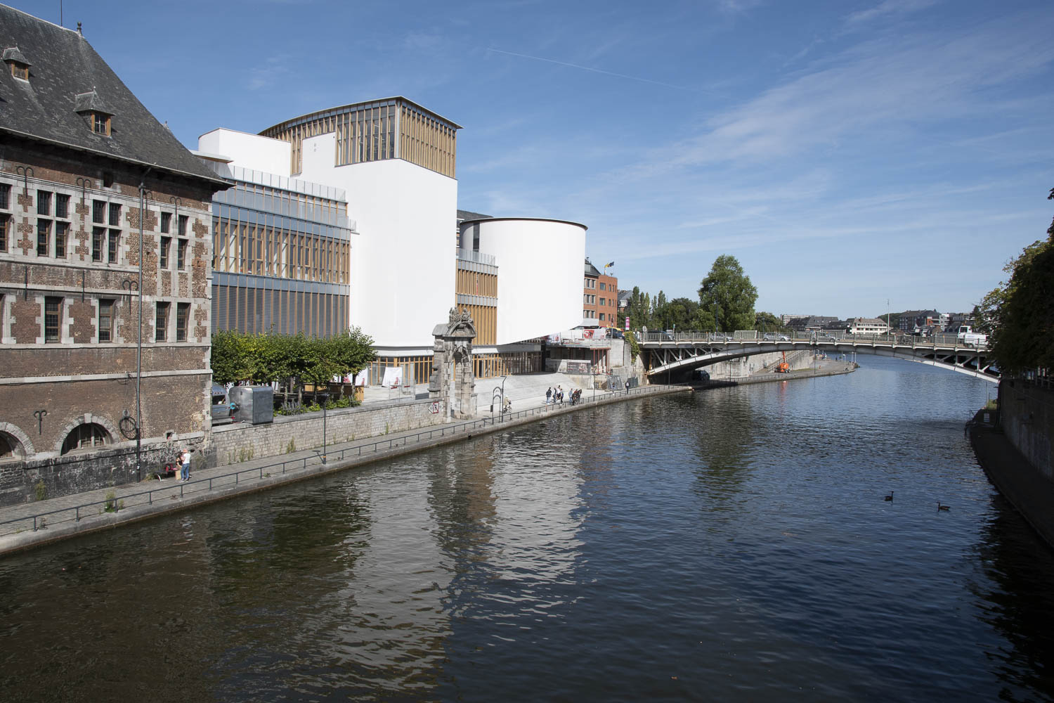 Het voormalige ‘Maison de la Culture’ aan de samenvloeiing van Samber en Maas in Namen was dringend aan restauratie en uitbreiding toe om tegemoet te komen aan de actuele eisen van een modern cultuurhuis. De herinrichting van de directe omgeving werd eveneens in het nieuwe project opgenomen.