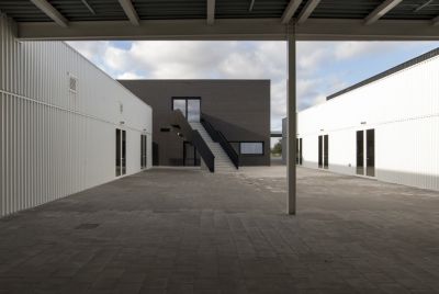 Tekst: <p>L’état désordonné qui s’est accru au fil du temps, d’un site exploité par un grossiste en pierres naturelles, terrazzo et carreaux céramiques, exigeait une intervention claire. Le site a été repensé selon un principe organisationnel très strict: une séparation fonctionnelle entre les zones de stockage, de production et du personnel. <br>Les nouveaux bâtiments (hall de production, hall de stockage de dalles et immeuble de bureaux) sont implantés comme autant de volumes indépendants, comme se pliant aux lois de la construction industrielle. Une structure en acier constitue la base des nouveaux bâtiments. <br>Malgré qu’il s’agisse d’une entreprise de transformation de la pierre naturelle, toutes les façades sont finies avec un revêtement métallique profilé. Cette finition de façade crée une cohérence visuelle entre le nouveau et l’existant. De subtiles nuances de couleur et le degré du détail différencient les volumes selon leur fonction spécifique. <br>L’intérieur des différents bâtiments est également traité de la même façon: la structure métallique répétitive, peinte en blanc, est visible./<p>”