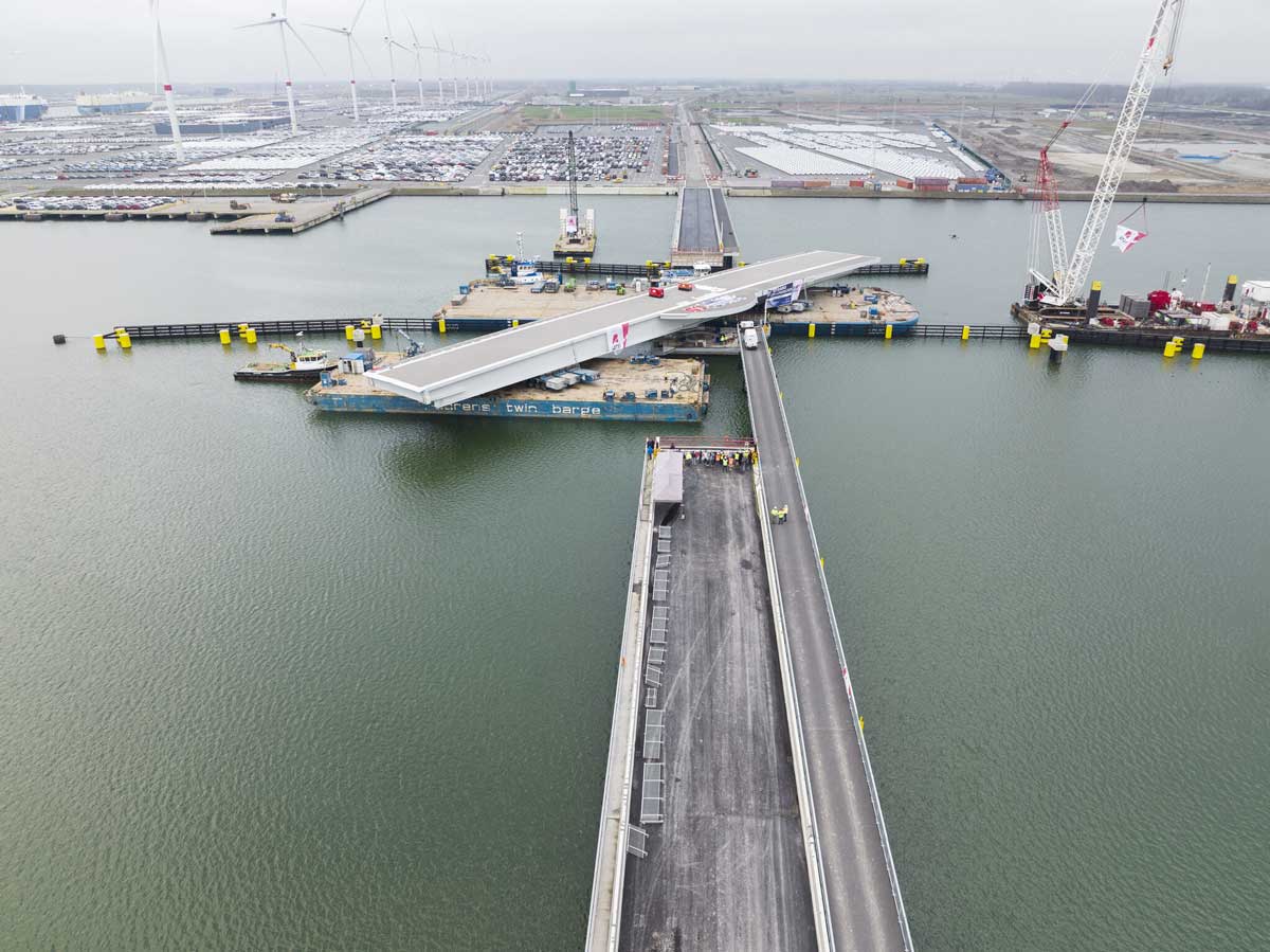 Deze nieuwe brug over het Verbindingsdok realiseert een extra Noord-Zuid toegangsweg voor het wegverkeer in de haven van Zeebrugge. Het is meteen ook de grootste beweegbare brug van Europa : 130 meter lang. Het stalen brugdek bestaat uit zware samengelaste hoofdliggers, gekoppeld met dwarsdragers en een orthotroop wegdek.