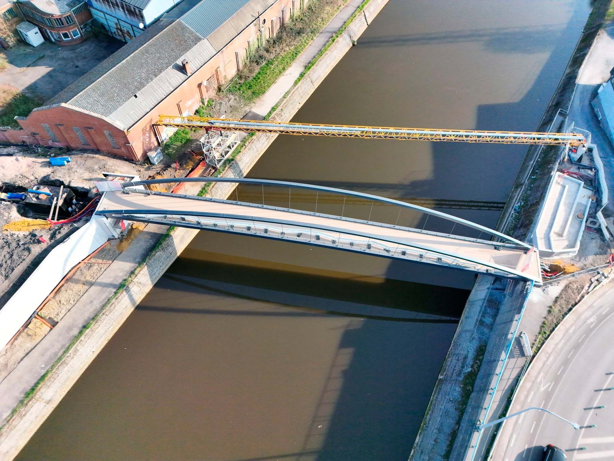 Nieuwe brug met hangende passerelle